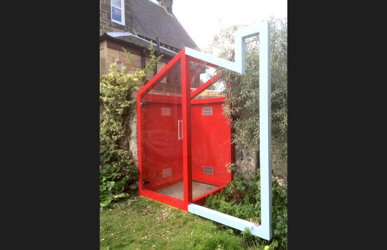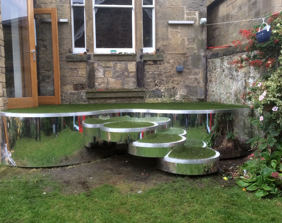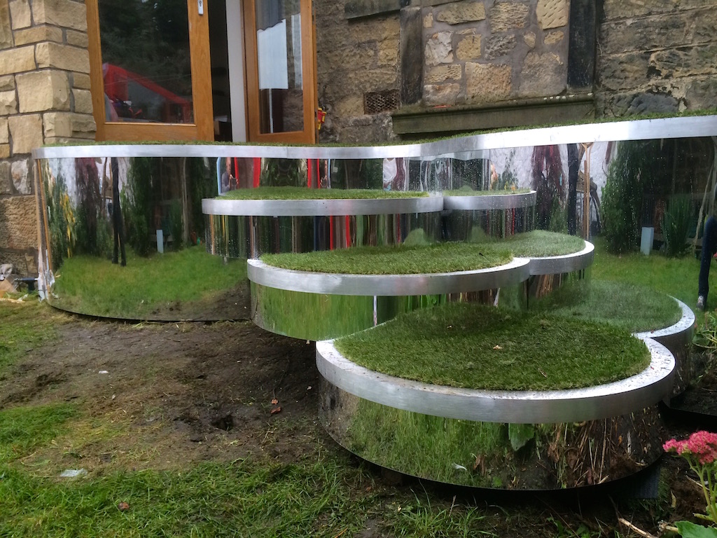 Delighted to be given the trust and freedom to develop these bespoke garden features from the clients early conceptual sketches. The extravagantly curved decking steps down to the garden below on floating mirrored discs. Leading to a one-of-a-kind greenhouse with a playful ‘chimney’ suspended elevation.